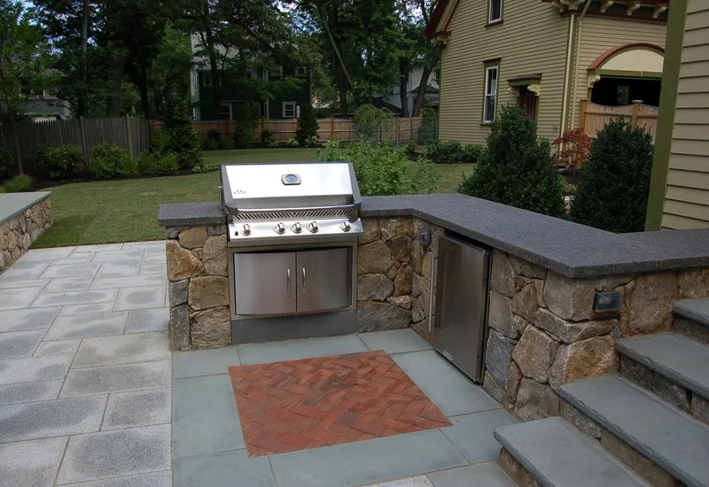 Outdoor living spaces across the North Shore must balance visual appeal with long-term durability. Salt air, wind exposure, and seasonal weather all play a role in how these spaces are built. We design patios, terraces, and gathering areas using natural stone, granite, and other materials that perform well in coastal environments while complementing traditional New England home styles.